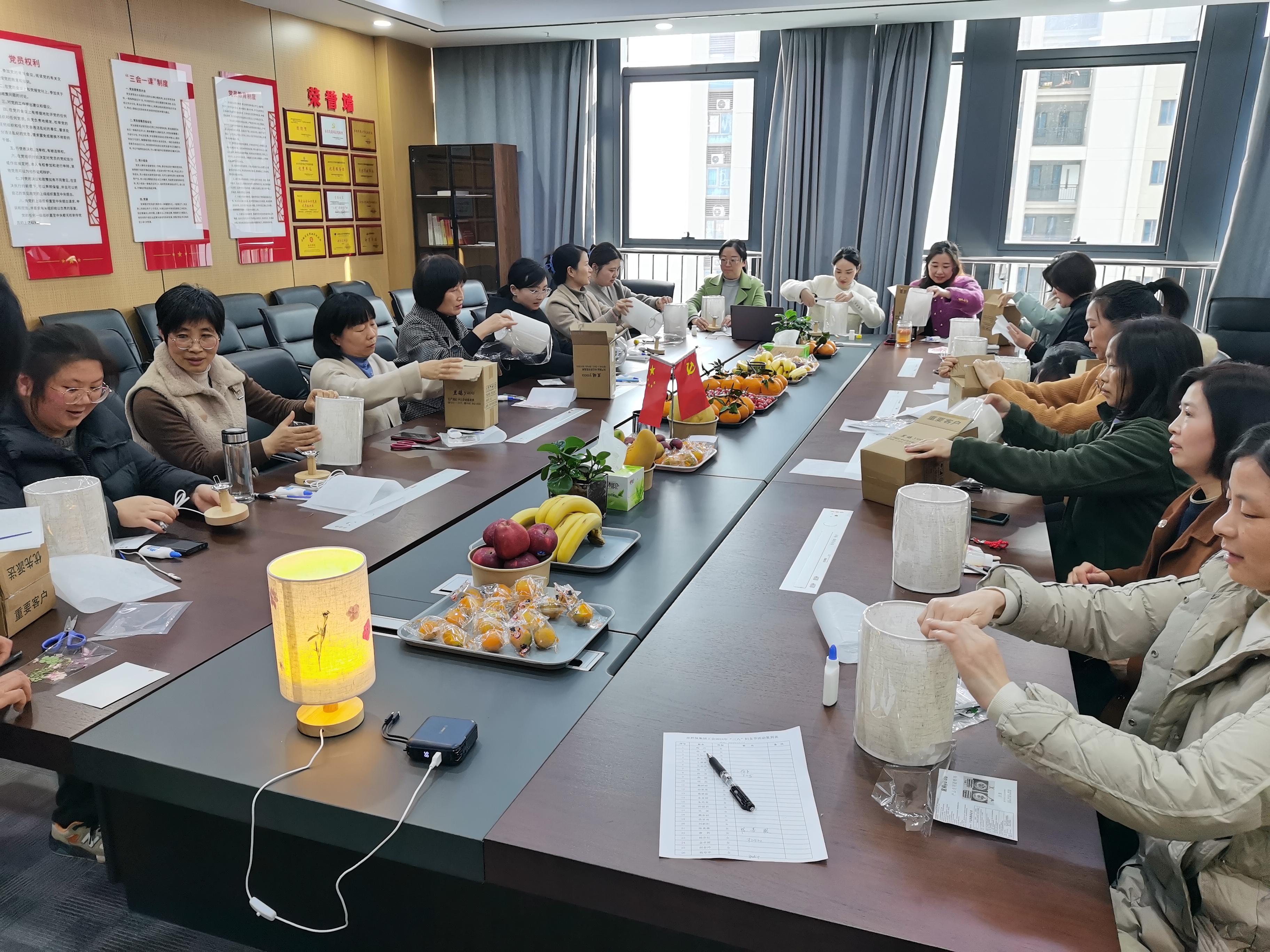 一是開展手工趣味活動(dòng)。邀請(qǐng)工會(huì)女工委員代表為大家指導(dǎo)壓花臺(tái)燈的設(shè)計(jì)和制作過程,在選花、構(gòu)思、涂膠方面給予詳細(xì)指導(dǎo)。女職工們邊聽邊學(xué)邊動(dòng)手,不斷討論、互相交流制作心得,分享自己的手工作品,并與作品合影留念?;顒?dòng)現(xiàn)場(chǎng)歡聲笑語不斷,其樂融融。