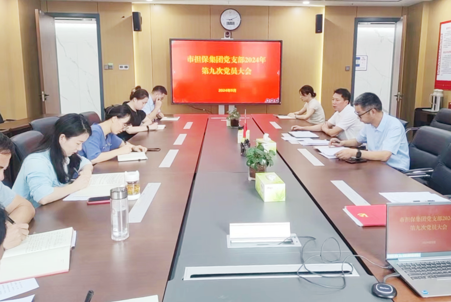 2024年9月20日上午,市擔(dān)保集團(tuán)黨支部召開全體黨員大會(huì),集團(tuán)黨委書記、總經(jīng)理高文進(jìn)以普通黨員身份參加會(huì)議,會(huì)議由黨支部書記徐志勇主持。